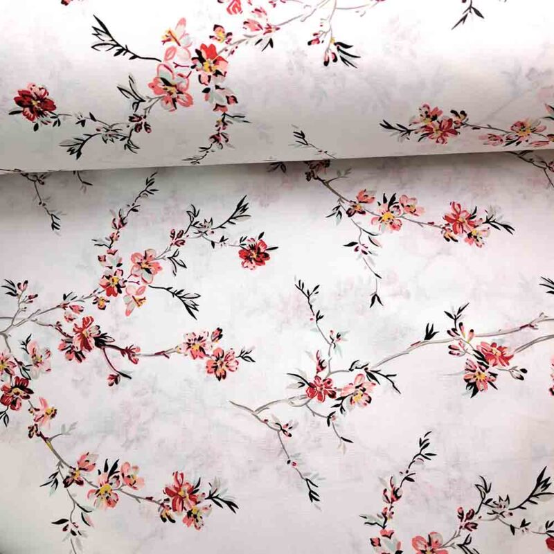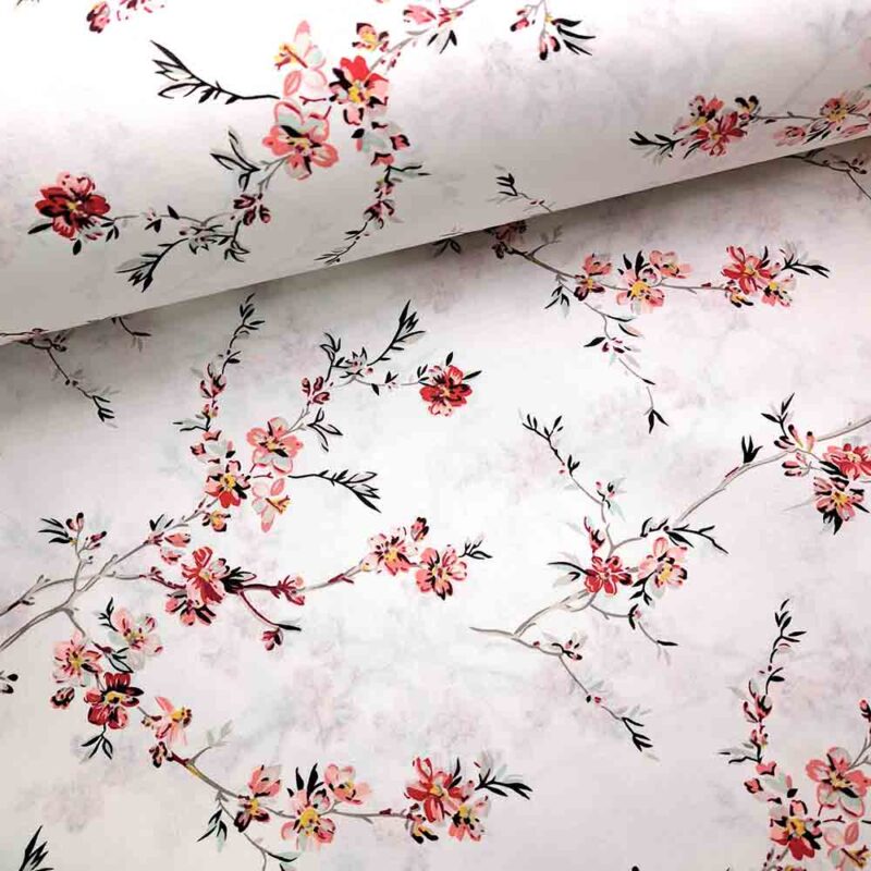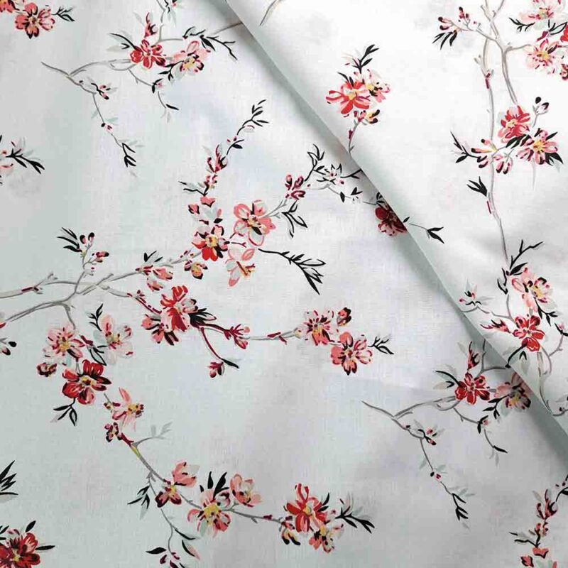 Ύφασμα 100% βαμβακερό    ΑΜΥΓΔΑΛΙΑ ΚΟΚΚΙΝΑ ΚΟΡΑΛΙ ΑΝΘΗ ΣΕ ΛΕΥΚΟ ΦΟΝΤΟ