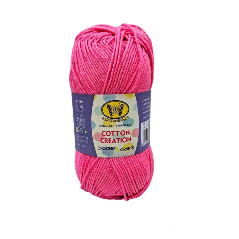 Νήμα της εταιρίας Πεταλούδα σε χρώμα ροζ candy, εξαιρετικής ποιότητας με μαλακή υφή. Πλέκεται εύκολα με βελόνες ν.3 & 4 ή με βελονάκι ν.3. Κατάλληλο για κατασκευές τύπου amigurumi και ό,τι άλλο εσείς επιθυμείτε.