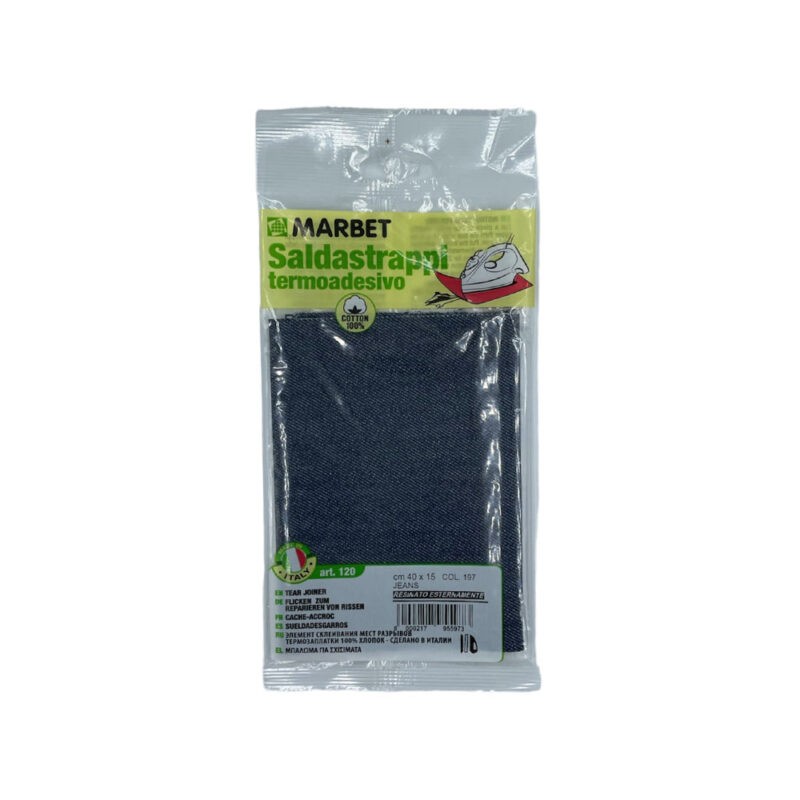 Θερμοκολλητικό βαμβακερό ύφασμα από την εταιρία MARBET. Το μπάλωμα αυτό σταθεροποιείται με σιδέρωμα. Πρόκειται για ένα ελαφρύ και ανθεκτικό ύφασμα, μπορείτε να το κόψετε σε ότι σχήμα θέλετε και να το χρησιμοποιήσετε σαν μπάλωμα και να ενισχύσετε τρύπες και φθορές στα ρούχα σας αλλά και όχι μόνο.