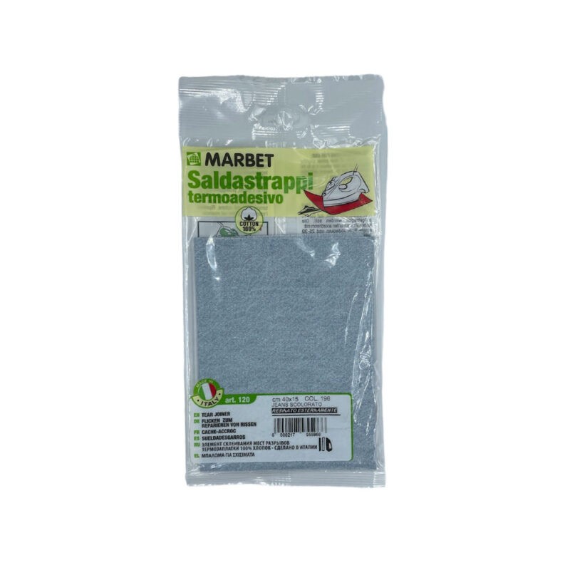 Θερμοκολλητικό βαμβακερό ύφασμα από την εταιρία MARBET. Το μπάλωμα αυτό σταθεροποιείται με σιδέρωμα. Πρόκειται για ένα ελαφρύ και ανθεκτικό ύφασμα, μπορείτε να το κόψετε σε ότι σχήμα θέλετε και να το χρησιμοποιήσετε σαν μπάλωμα και να ενισχύσετε τρύπες και φθορές στα ρούχα σας αλλά και όχι μόνο.