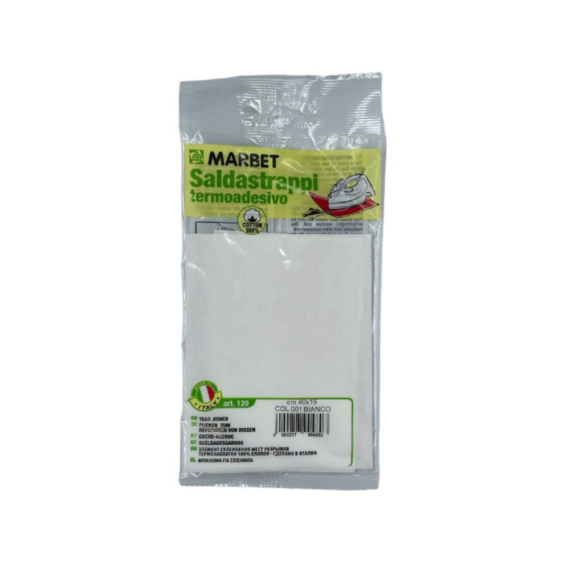 Θερμοκολλητικό βαμβακερό ύφασμα από την εταιρία MARBET. Το μπάλωμα αυτό σταθεροποιείται με σιδέρωμα. Πρόκειται για ένα ελαφρύ και ανθεκτικό ύφασμα, μπορείτε να το κόψετε σε ότι σχήμα θέλετε και να το χρησιμοποιήσετε σαν μπάλωμα και να ενισχύσετε τρύπες και φθορές στα ρούχα σας αλλά και όχι μόνο.