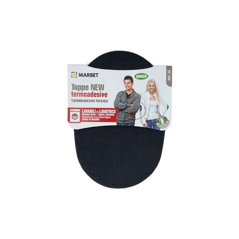 Θερμοκολλητικό μπάλωμα οβάλ από την εταιρία MARBET. Το μπάλωμα αυτό σταθεροποιείται με σιδέρωμα. Είναι ιδανικό για γόνατα και αγκώνες ρούχων.