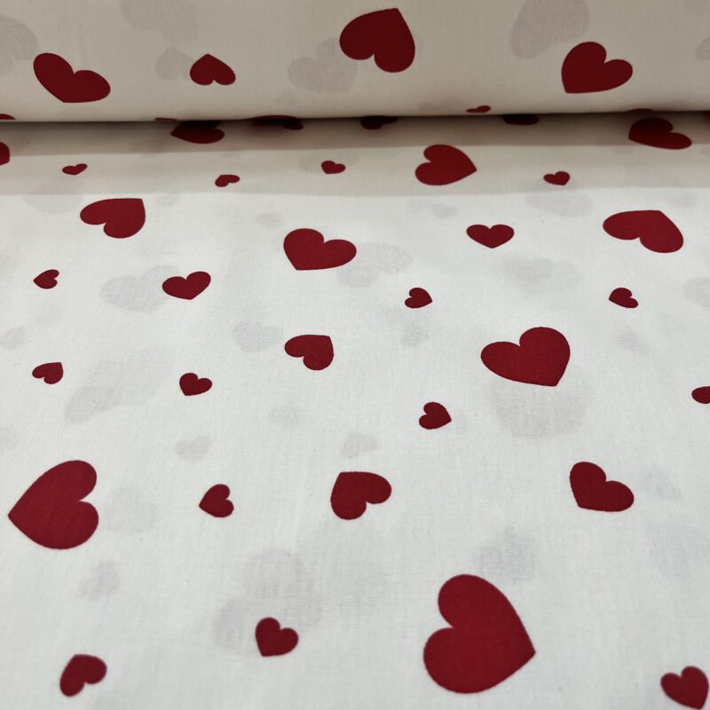Ύφασμα 100% βαμβακερό ΚΑΡΔΙΕΣ ΚΟΚΚΙΝΕΣ ΣΕ ΛΕΥΚΟ ΦΟΝΤΟ