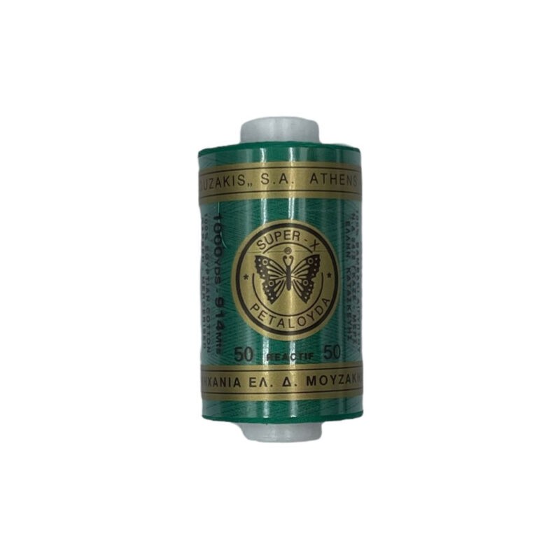 Κλωστή για ράψιμο SUPER-X από την εταιρία ΠΕΤΑΛΟΥΔΑ-ΜΟΥΖΑΚΗΣ. Πρόκειται για το κλασικό κυλινδράκι από 100% αιγυπτιακό βαμβάκι εξαιρετικής ποιότητας. Είναι κατάλληλη τόσο για ράψιμο στο χέρι όσο και στη μηχανή. Το κάθε καρουλάκι αποτελείται από 914m κλωστή.