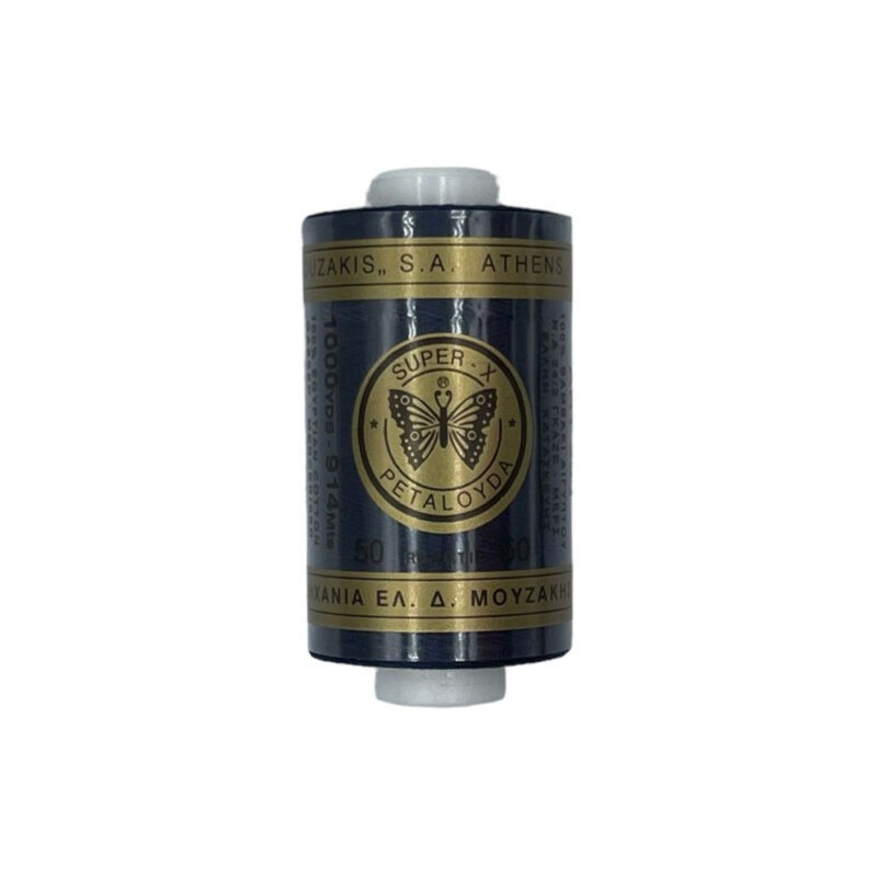 Κλωστή για ράψιμο SUPER-X από την εταιρία ΠΕΤΑΛΟΥΔΑ-ΜΟΥΖΑΚΗΣ. Πρόκειται για το κλασικό κυλινδράκι από 100% αιγυπτιακό βαμβάκι εξαιρετικής ποιότητας. Είναι κατάλληλη τόσο για ράψιμο στο χέρι όσο και στη μηχανή. Το κάθε καρουλάκι αποτελείται από 914m κλωστή.