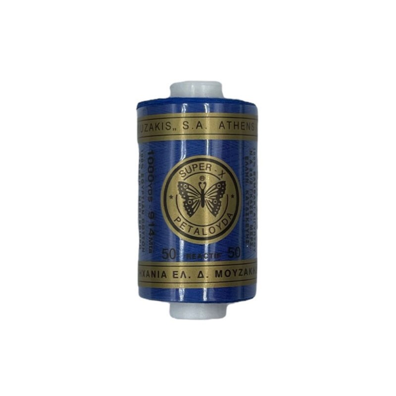 Κλωστή για ράψιμο SUPER-X από την εταιρία ΠΕΤΑΛΟΥΔΑ-ΜΟΥΖΑΚΗΣ. Πρόκειται για το κλασικό κυλινδράκι από 100% αιγυπτιακό βαμβάκι εξαιρετικής ποιότητας. Είναι κατάλληλη τόσο για ράψιμο στο χέρι όσο και στη μηχανή. Το κάθε καρουλάκι αποτελείται από 914m κλωστή.