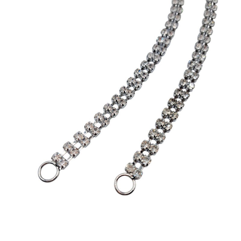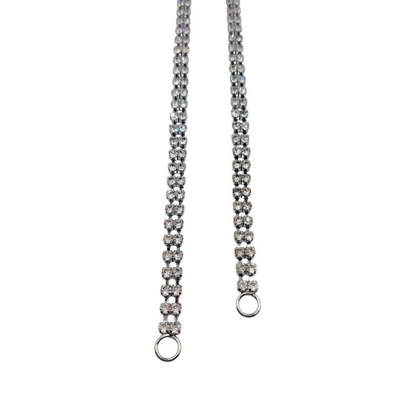 Μεταλλική τιράντα σε ασημί χρώμα με διπλή γραμμή στρας για να ανανεώσετε τα ρούχα σας.