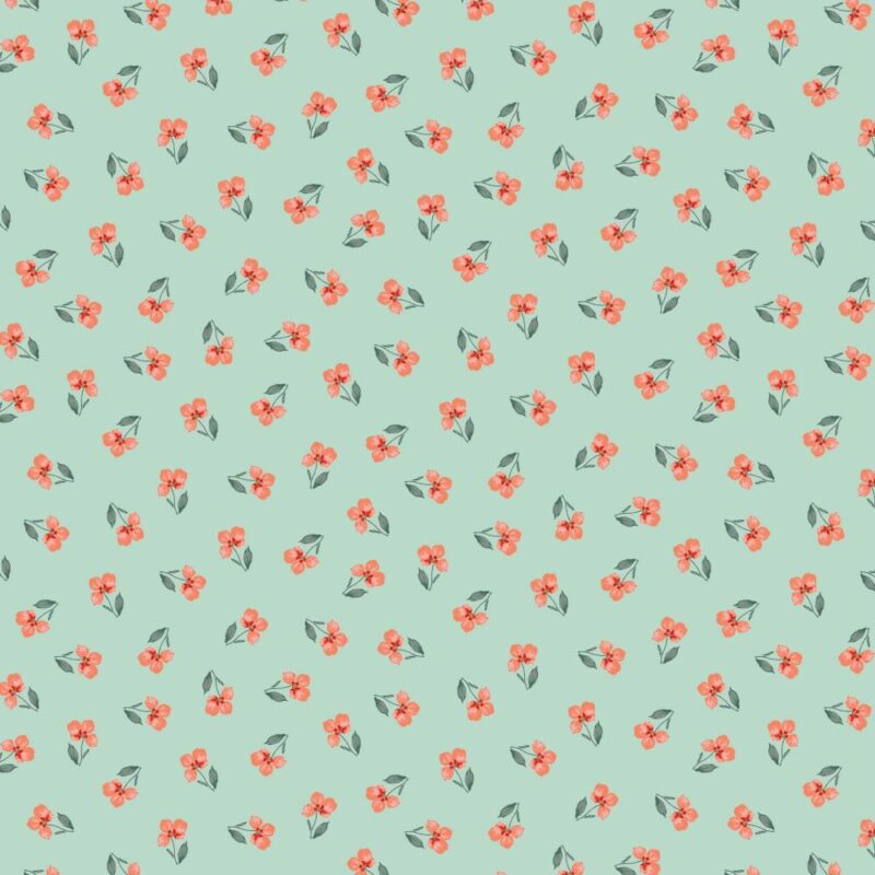 Ύφασμα 100% βαμβακερό Μικρά άνθη σε μέντα φόντο