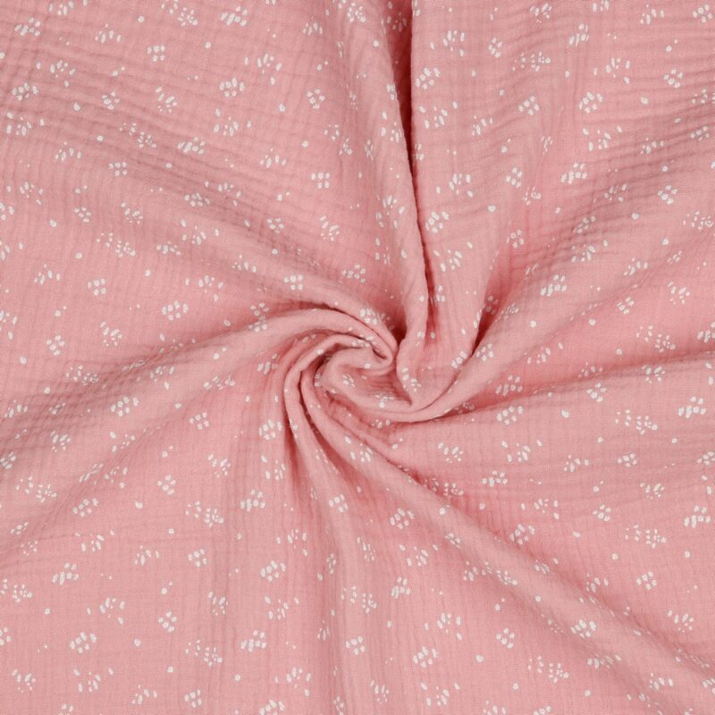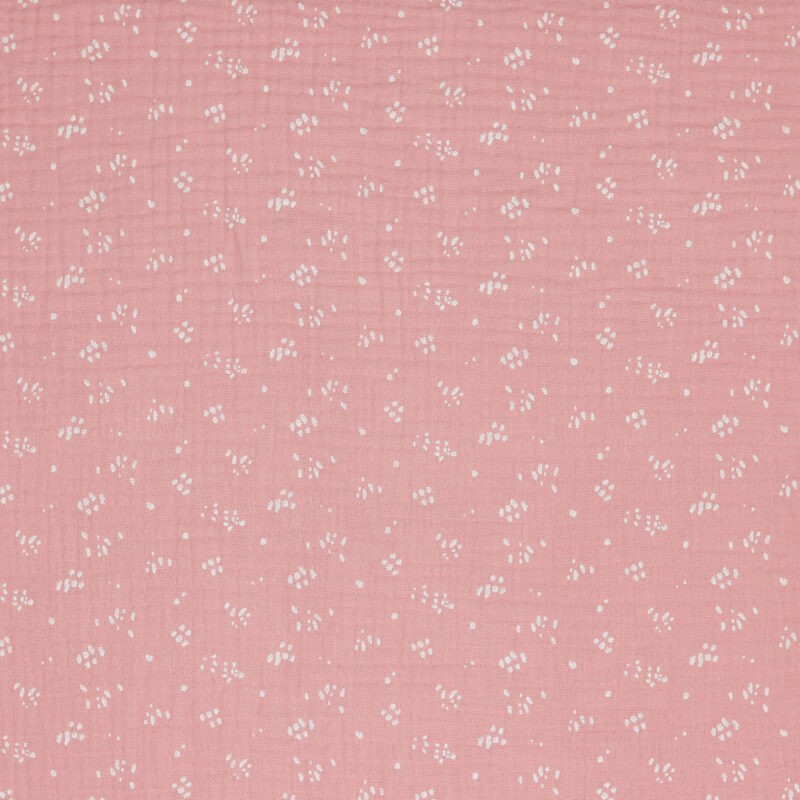 Μουσελίνα βαμβακερή με σχέδιο πιτσιλιές σε φόντο old rose