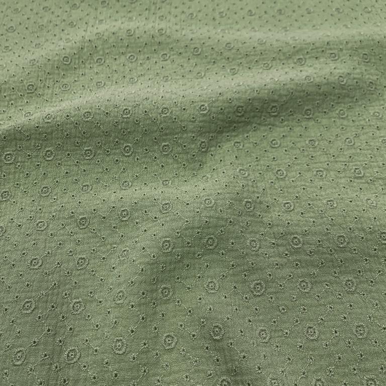 Μουσελίνα βαμβακερή με σχέδιο Μπροντερί σε Χακί χρώμα