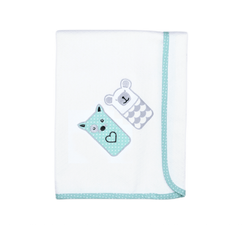Aπαλή και μαλακή πάνα για να τυλίξετε και να κρατήσετε το μωρό αγκαλιά. Η πάνα αγκαλιάς είναι απαραίτητη τους πρώτους 6 μήνες του μωρού. Μπορεί να χρησιμοποιηθεί σαν κουβερτάκι στο λίκνο, στο καροτσάκι ή στην καλαθούνα. Έχει κέντημα στη μία πλευρά και όμορφο εμπριμέ ρέλι περιμετρικά. Είναι 100% βαμβακερή και πλένεται στο πλυντήριο στους 40˚C. H διάστασή της είναι 85cm x 85cm.