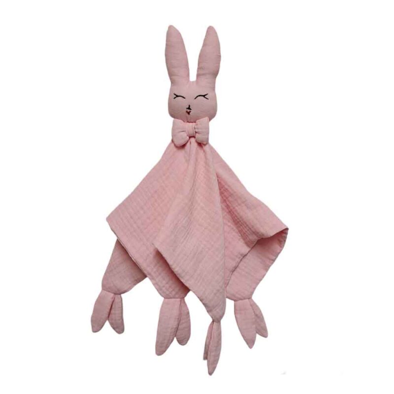 Φτιαγμένο από μουσελίνα βαμβακερή, το πανέμορφο αυτό χειροποίητο πανάκι αγκαλιάς -νάνι, θα συντροφεύει το μωράκι σας όλες τις ώρες, στην κούνια, στην αγκαλιά, στο καρότσι, στη βόλτα και στον ύπνο. Το κουνελάκι, με τα υπέροχα πεταχτά αυτιά του, που είναι ραμμένο στο κέντρο του νάνι, θα γίνει ο αχώριστος φίλος του μικρού σας.