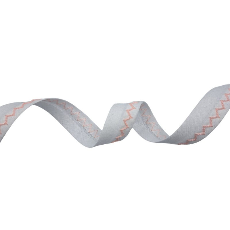 Ρέλι λευκό με διακοσμητική γραμμή κεντήματος ροζ χρώματος, πλάτους 18 χιλιοστών. Διακοσμήστε τα αγαπημένα σας ρούχα, λευκά είδη και ό,τι άλλο επιθυμείτε με αυτό το ρέλι εξαιρετικής ποιότητας.