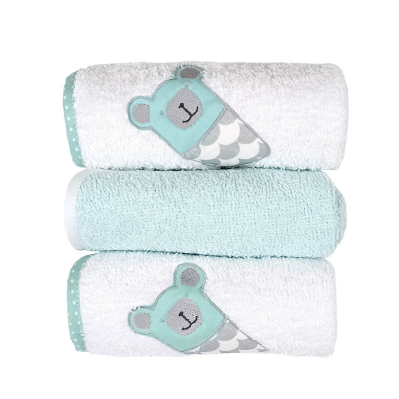 Σετ λαβέτες το οποίο αποτελείται από 3  τετράγωνα πετσετάκια, διάστασης 30cm x 30cm. Είναι υπερ- απορροφητικές  από 100% βαμβάκι, πολύ χρήσιμες για την ώρα του φαγητού αλλά και για μετά, τοποθετώντας μία στον ώμο για να ρευτεί το μωρό. Πλένονται στο πλυντήριο στους 40˚C.