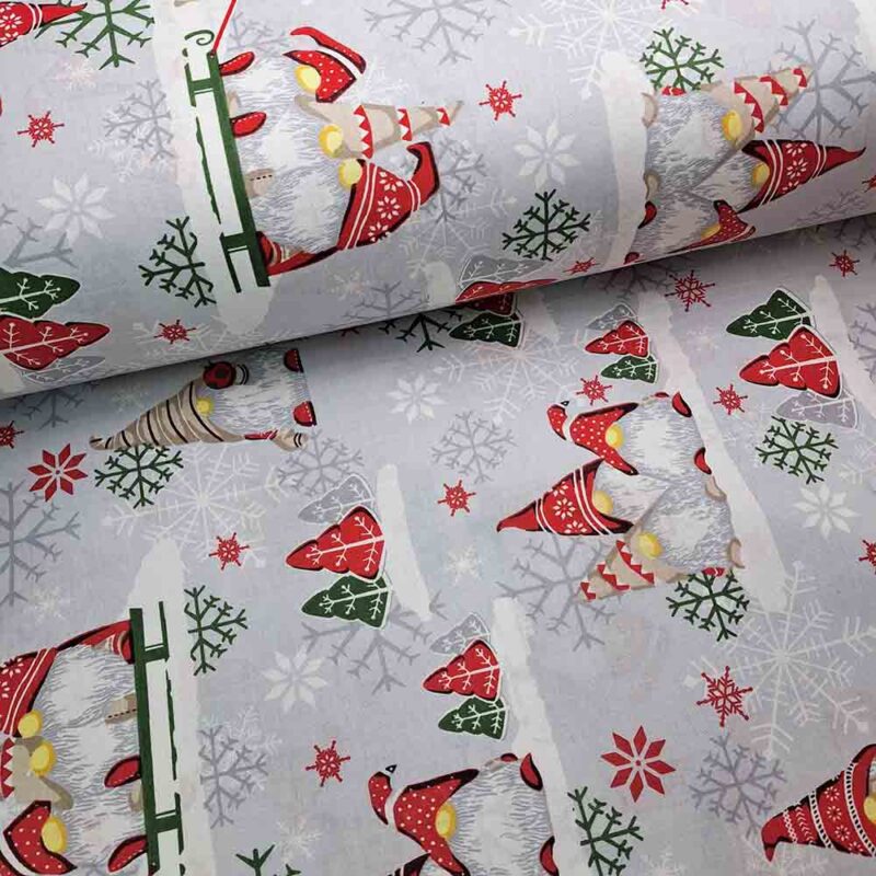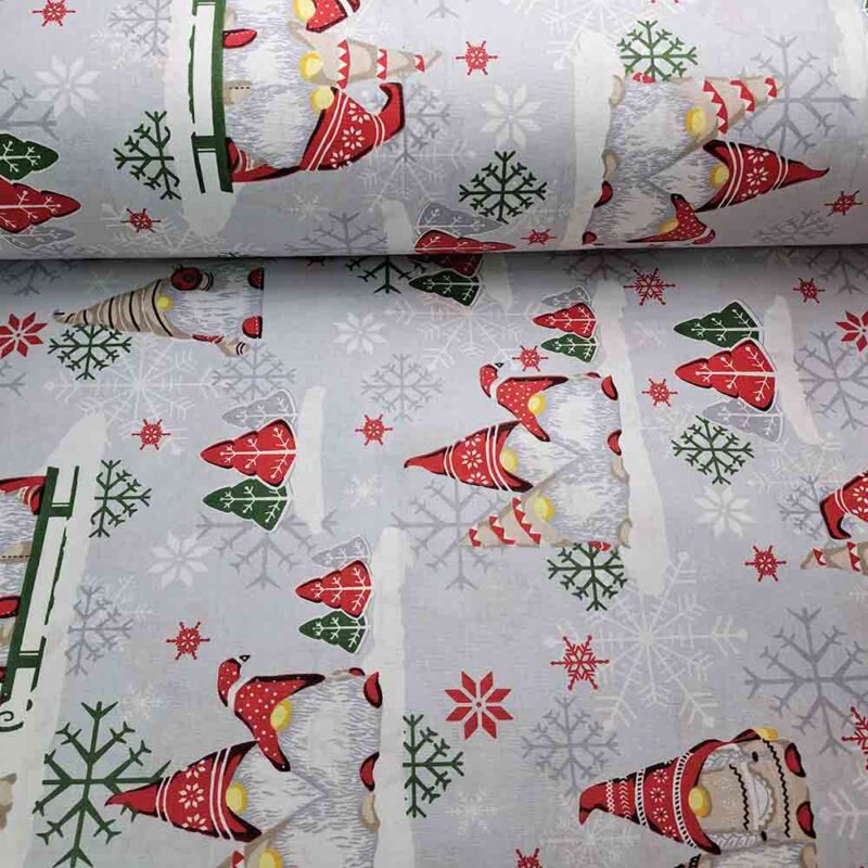 Ύφασμα 100% βαμβακερό ΧΡΙΣΤΟΥΓΕΝΝΙΑΤΙΚΟΙ ΝΑΝΟΙ ΣΕ ΓΚΡΙ ΑΝΟΙΧΤΟ ΦΟΝΤΟ