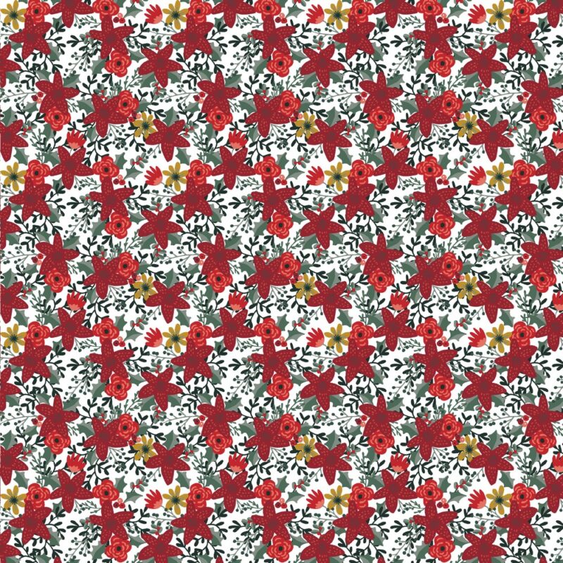 Ύφασμα 100% βαμβακερό Christmas flowery σε λευκό φόντο