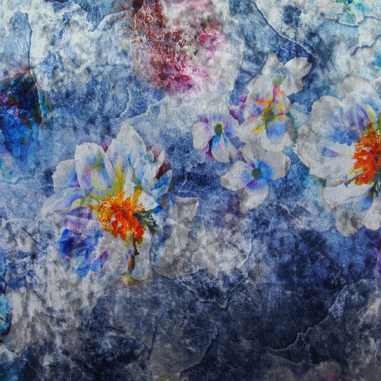 DIGITAL ΕΛΑΣΤΙΚΟ ΒΕΛΟΥΔΟ, BLUE FLOWERS-Ύφασμα με το μέτρο, φάρδος 150cm.