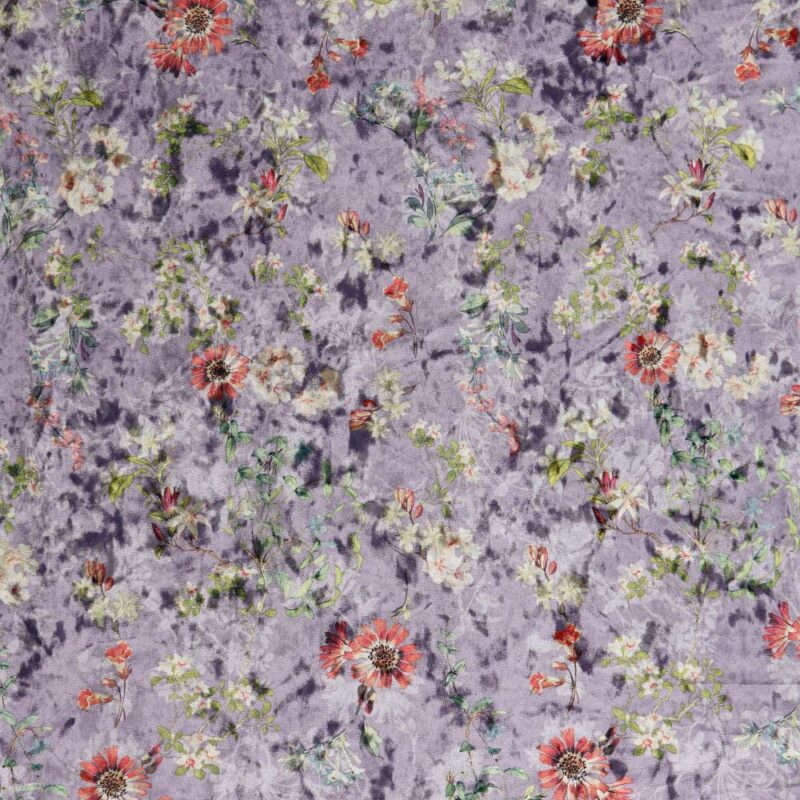 DIGITAL ΕΛΑΣΤΙΚΟ ΒΕΛΟΥΔΟ, PURPLE FLOWERS-Ύφασμα με το μέτρο, φάρδος 150cm.