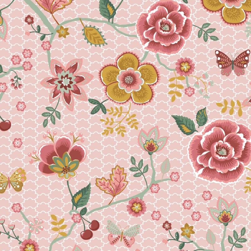 Ύφασμα βαμβακερό 100% λουλούδια ροζ
