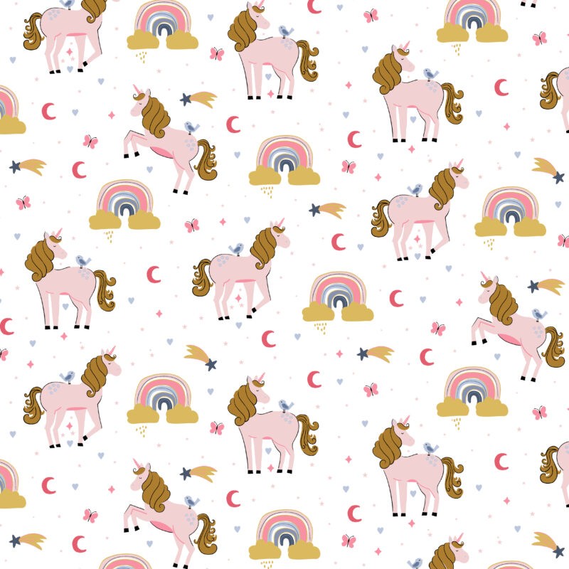 Ύφασμα βαμβακερό 100% Unicorns and Rainbows σε λευκό φόντο